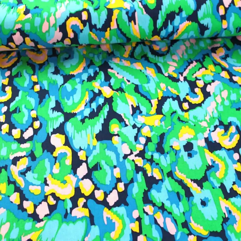 Deze 100% viscose stof is erg zacht en soepel vallend. Viscose is een natuurproduct en draagt daardoor erg aangenaam. De stof wordt veel gebruikt voor blouses, jurken en rokken.
