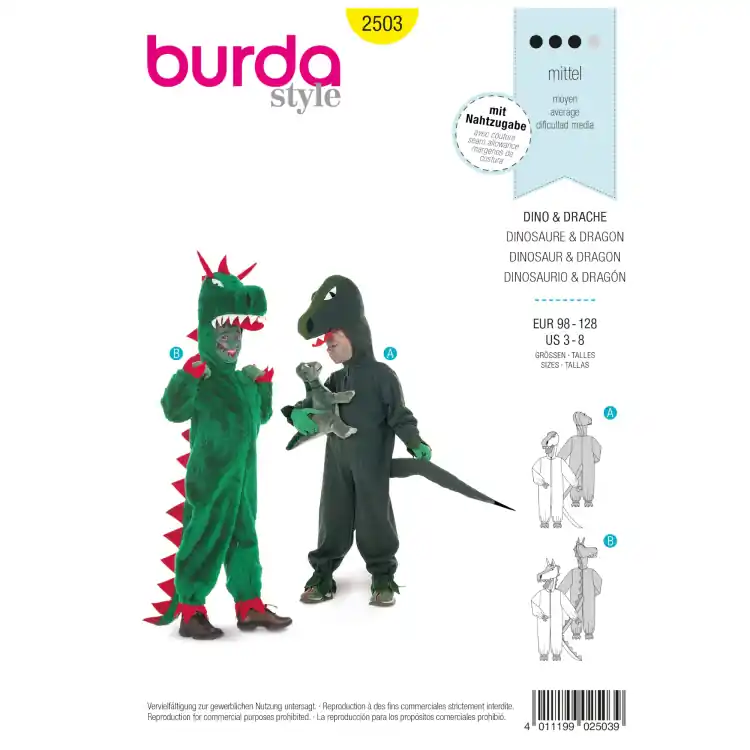 Aanbieding Sewing pattern Dinosaur & Dragon, Burda 2503, Dui/En/Fr