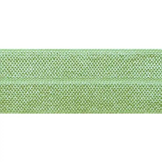 Lime kleurig elastisch biaisband met een lurex glitter uitstraling, de achterzijde is mat van kleur. Dit band is uitermate geschikt voor het afwerken van elastische stoffen zoals t-shirts.