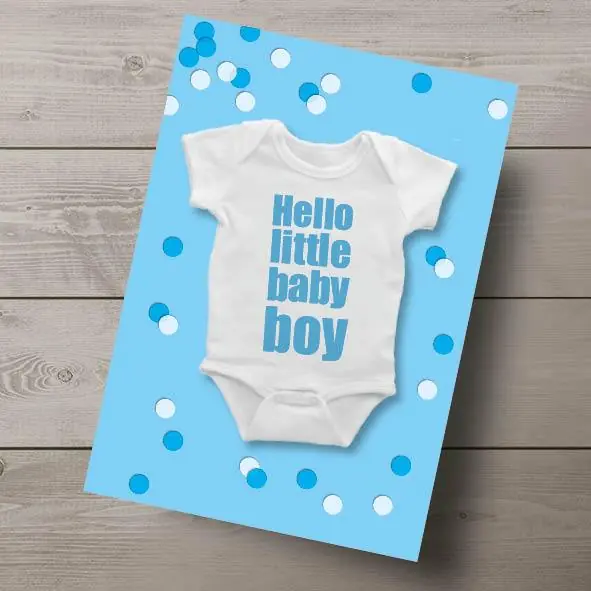 Ansichtkaart: Hello Little Baby Boy – Een cadeautje geven is nog leuker dan een cadeautje ontvangen, wordt vaak gezegd. Verstuur je kaart met eigen tekst in combinatie met een cadeau en verras de ontvanger!