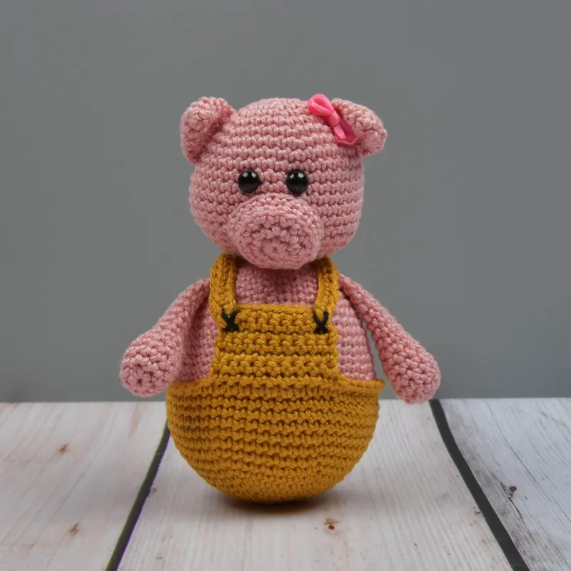 Haakpatroon Tuimelvarken (download) – Dit varkentje knort vrolijk als je hem een duwtje geeft en laat wiebelen. Hij houdt van duwen en stoten en keert altijd terug voor meer wiebel- en wobbelplezier.