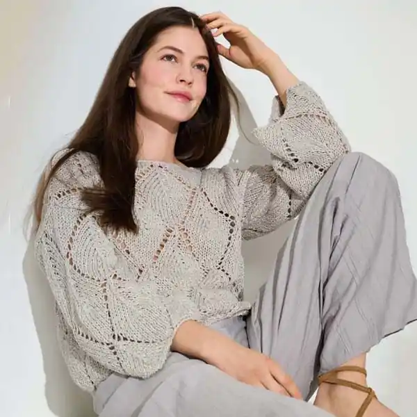 Deze zomerse damestrui met opengewerkte wieberpatroon is een aanwinst voor jouw garderobe. Heerlijk luchtig door het gaatjes motief en de garensamenstelling. Daarnaast is dit hippe model leuk te combineren met zowel en broek als een rok. Omdat je een ajourmotief breit is het een afwisselend project.