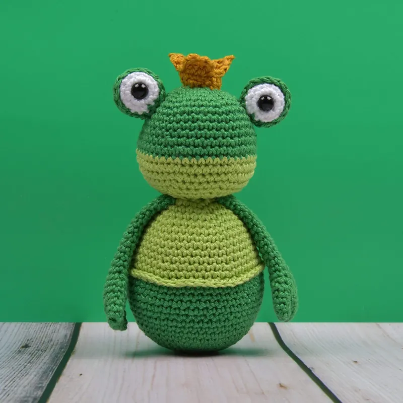 Garenpakket: Tuimelkikker – Wiebelen en wobbelen, dat doet deze tuimelkikker het liefst de hele dag! Geef hem een duwtje en vrolijk zal hij heen en weer wobbelen. Als je hem oppakt en schudt, komt er een lief geluidje uit. Deze kikker kan absoluut tegen een stootje. Als je hem een zetje geeft, komt hij altijd weer terug voor meer wiebelplezier!