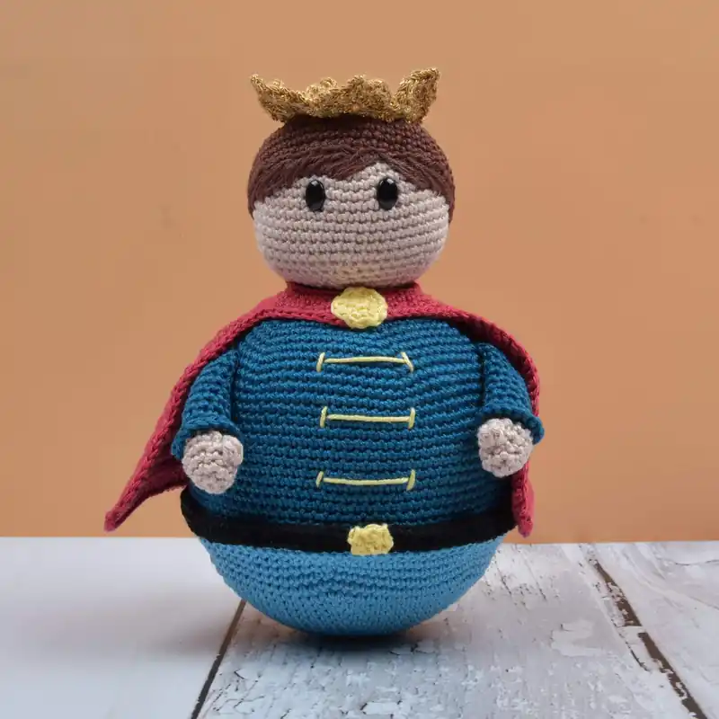 Garenpakket: Tuimelprinses – is gemaakt met Coral van Durable en wordt ongeveer 18 cm groot. De prinses houdt van duwen en stoten en keert altijd terug voor meer plezier! Je kunt de prinses oppakken en schudden, zodat er een lief geluidje uitkomt.