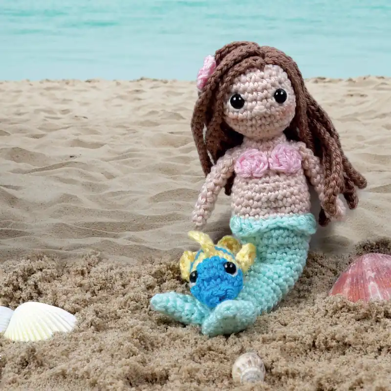 Zeemeerminnen zijn een van de meest bekende mythische figuren en hebben ons als mensheid al jaren betoverd. Met het haakpakket haak je jouw eigen zeemeermin en haar vriendje visje Viggo.