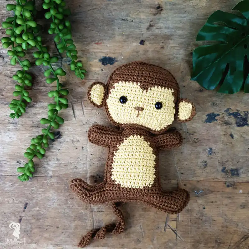 Haakpakket: HardiCraft Aap Morris – Je jungle collectie is niet compleet zonder Morris! Deze speelse aap is een musthave voor elke jungle slaapkamer. Dit pakket bevat een patroon, kwaliteitsgaren van 100% katoen en alle fournituren die nodig zijn om aan het werk te gaan (excl. haaknaald). Morris is ongeveer 17 cm groot en is gemaakt met een haaknaald 2,5 mm.