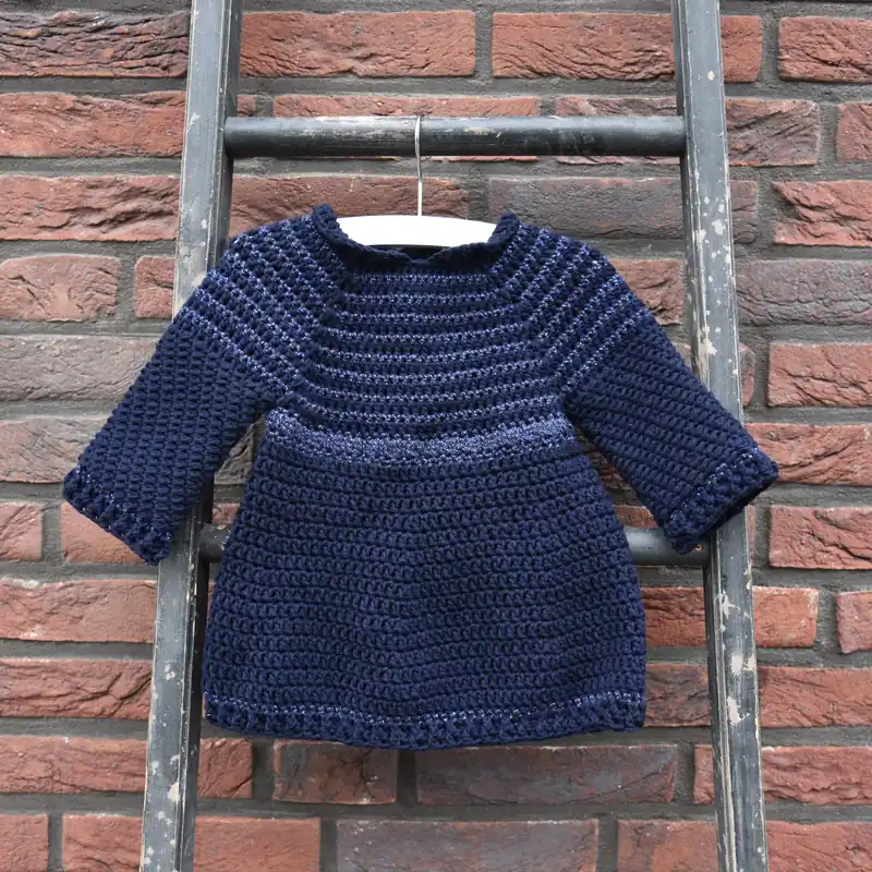 Haakpakket: Babyjurkje Sofie – Babyjurkje Sofie is speciaal ontworpen voor de feestdagen in de modekleur Navy. Dit schattige jurkje heeft een subtiele glitter. Bovenop een feestelijke maillot perfect voor de aankomende feestdagen. Op de achterkant van het jurkje zijn vier toffe bloem knopen verwerkt. Het model is ontworpen in de maat 62-68.