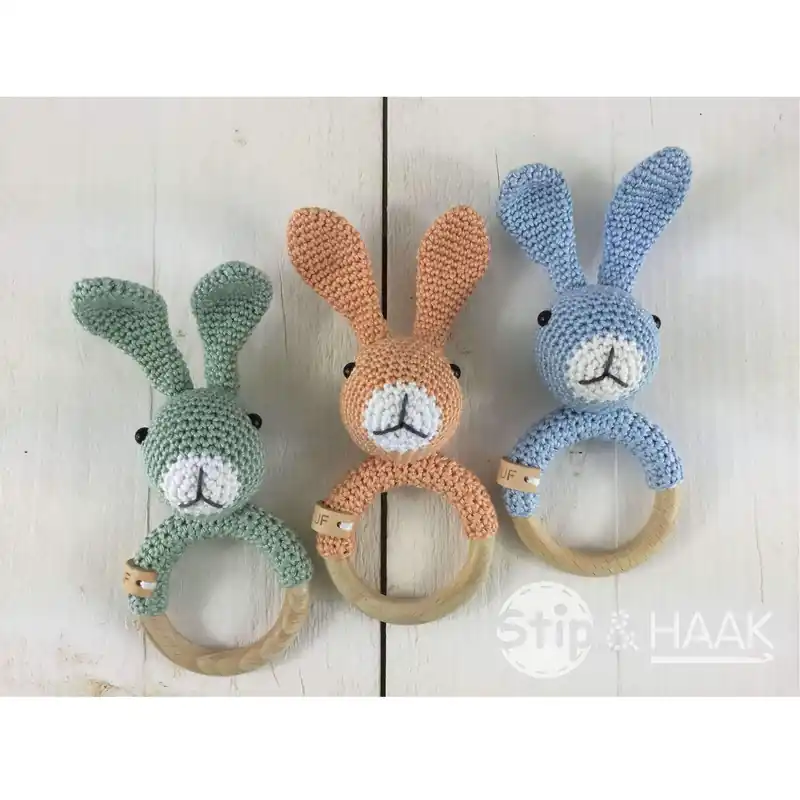 Met het pakket van rammelaar Snuf ga je direct aan de slag. Rammelaar Snuf is één van de vele originele haakpatronen van Stip en Haak. Het patroon van rammelaar Snuf is gratis te downloaden.