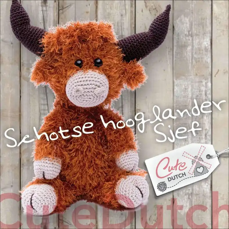 Schotse hooglander Sjef is gemaakt met Catona en Panda van Scheepjeswol en wordt ongeveer 36 cm groot.