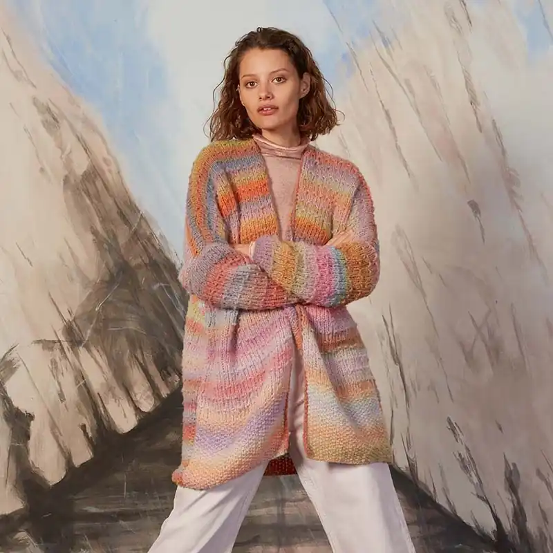 Het damesvest Olga breien doe je met het Lang Yarns Orion breipakket. Het pakket bevat voldoende garen en het patroonboekje met nog meer inspiratie. Door het zachte kleurverloop en de combinatie van kleuren die perfect op elkaar zijn afgestemd, is het resultaat altijd geslaagd. Dit half lange vest draagt comfortabel door het lichtgewicht garen waarmee het is gemaakt.