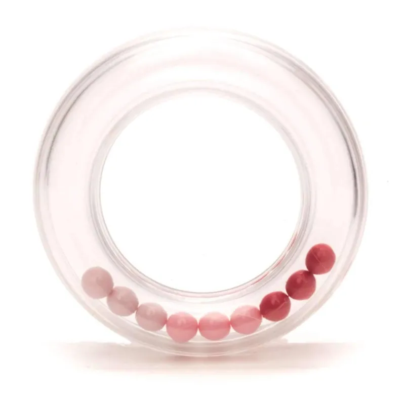 Rammelringen met 9 gekleurde balletjes erin om zelf je eigen babyspeelgoed te maken.