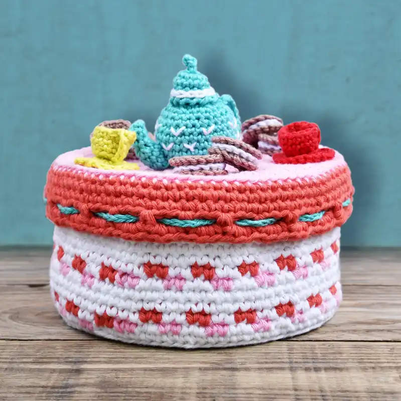 Haakpakket: Theedoosje – Met deze theedoos worden thee drinken pas echt gezellig! Superleuk om cadeau te geven (verjaardag, afscheid, bedankje of zomaar). Het pakket bevat garen voor één theedoos, maar wil je graag twee of drie theedoosjes maken? Dan hoef je alleen een bol Double four 310 White extra mee te bestellen. Van de overige garens zit er voldoende in het pakket om er meerdere te haken.