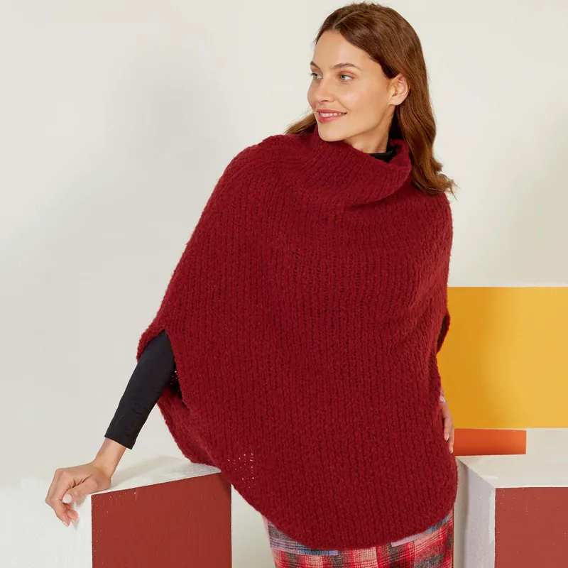 Deze stijlvolle poncho zelf breien is een leuk project wat je maakt met het Lang Yarns Phoenix breipakket. De poncho sluit bovenaan mooi aan en heeft twee openingen aan de zijkant voor de handen. Zo onstaat het perfecte model poncho die je zowel binnen als buiten draagt.