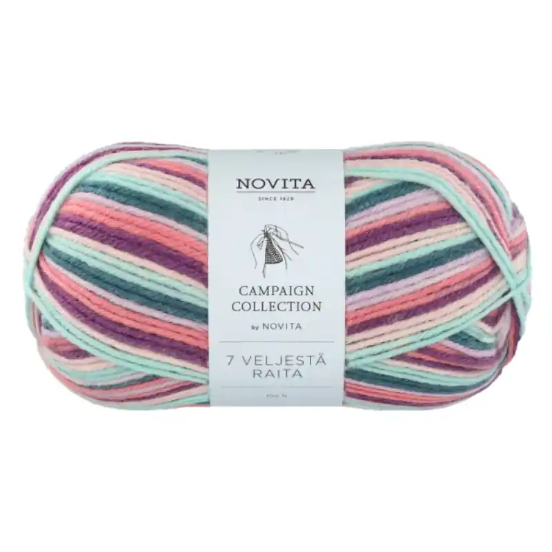 Novita 7 Veljestä Raita behoort tot de Classic Collection van Novita. Novita 7 Brothers Raita is een sokkengaren waarmee je twee identieke gestreepte sokken kunt breien zonder van draad te hoeven wisselen en nog makkelijker, de strepen ontstaan vanzelf tijdens het breien. En als je niet van al te bonte kleuren houdt dan is Raita een goede keuze omdat het tweekleurig is. Ook deze sokkenwol slijtvast en duurzaam.
