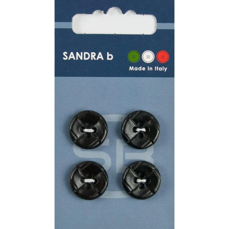 Sandra B knopen C169 maat 24 – 15 mm Zwart met motief – Sandra B knopen staat voor kwaliteit en betaalbaar. De knopen zijn er in vele soorten en maten en verpakt op een handig kaartje. Op dit kaartje zitten 4 prachtige knopen. De knoop heeft een afmeting van 15 mm.