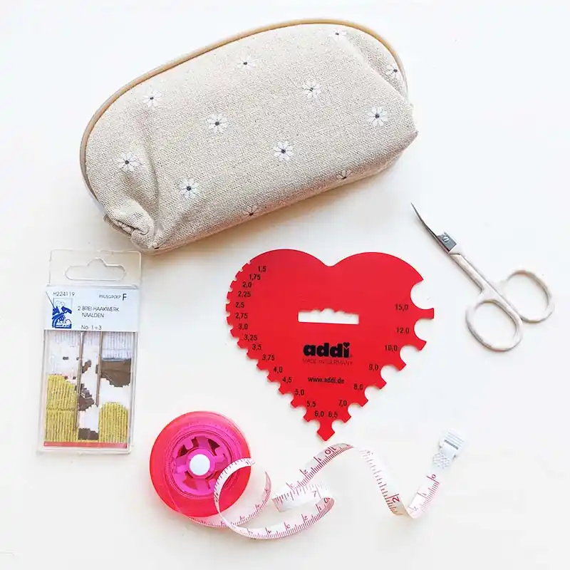 Met deze set van haakaccessoires heb je handig de basis benodigdheden voor het haken bij de hand. Het etuitje is stevig en sluit met een rits. De maasnaalden zijn handig voor het afwerken van je haakwerk, even als het schaartje. Het lichtgewicht rolmaatje heeft 2 soorten maten, centimeters en inches. Tot slot ontvang je bij deze set ook een haaknaalden meter. Een handige tool wanneer de maatvoering van je haaknaald is gesleten.