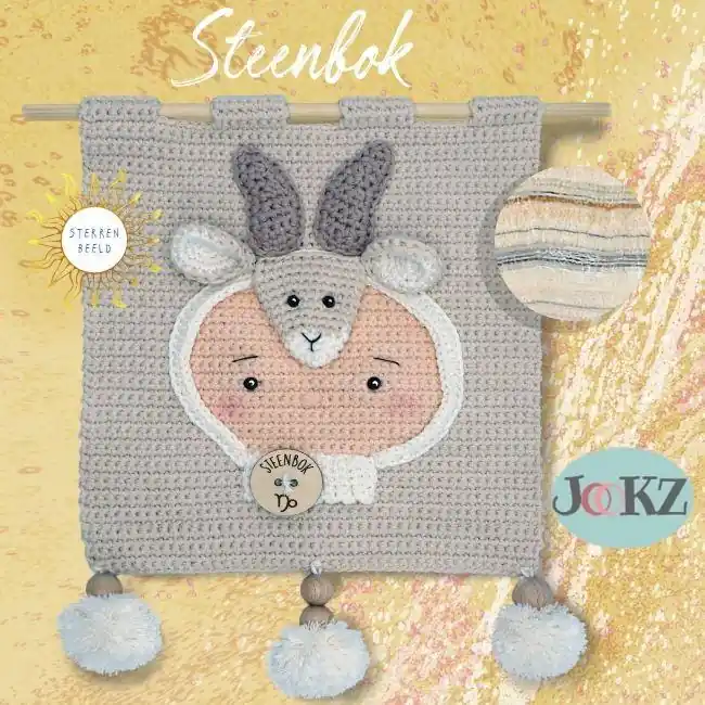 Garenpakket: Wandhanger Steenbok – Persoonlijker kan het niet, een wandhangers van het sterrenbeeld. Met zo’n cadeautje kun je wel aankomen bij een nieuwe wereldburger. En het is helemaal af met zo’n grote houten knoop erop. De wandhangers zijn gehaakt met Scheepjes Cahlista, een mooie, zachte maar ook stoere draad. In een paar avondjes heb je het al klaar, want je haakt het op haaknaald 3.50mm.
