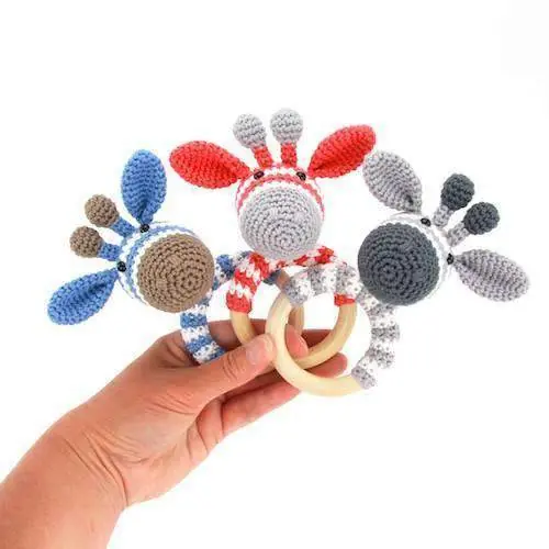 Met het pakket van rammelaar Gijs kun je direct aan de slag. Rammelaar Gijs is één van de vele originele haakpatronen van Stip en Haak. Het patroon van rammelaar Gijs tevens is gratis te downloaden.