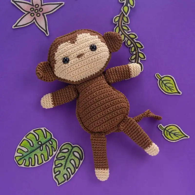 Garenpakket: Appie de Aap – De aap is één van de leuke knuffels uit junglebeestjes haken! van Christel Krukkert. Het garenpakket bevat de garens, zoals Christel deze voorschrijft in haar boek.